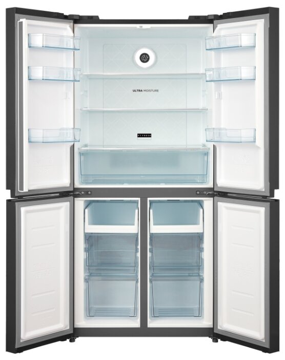 - Для открывания требуется распахивать обе дверцы холодильной камеры.