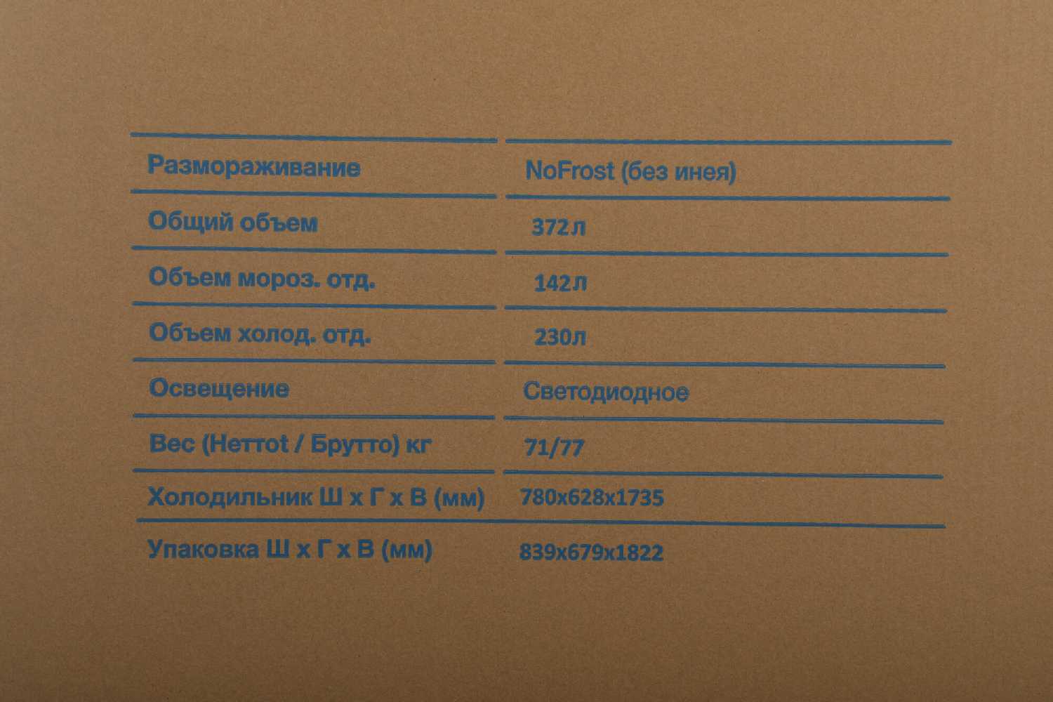 - Объем холодильной камеры (230+ литров) и морозильной (до 142 литров) позволяет размещать большое количество продуктов без тесноты, что особенно ценно для семей из 3-5 человек.