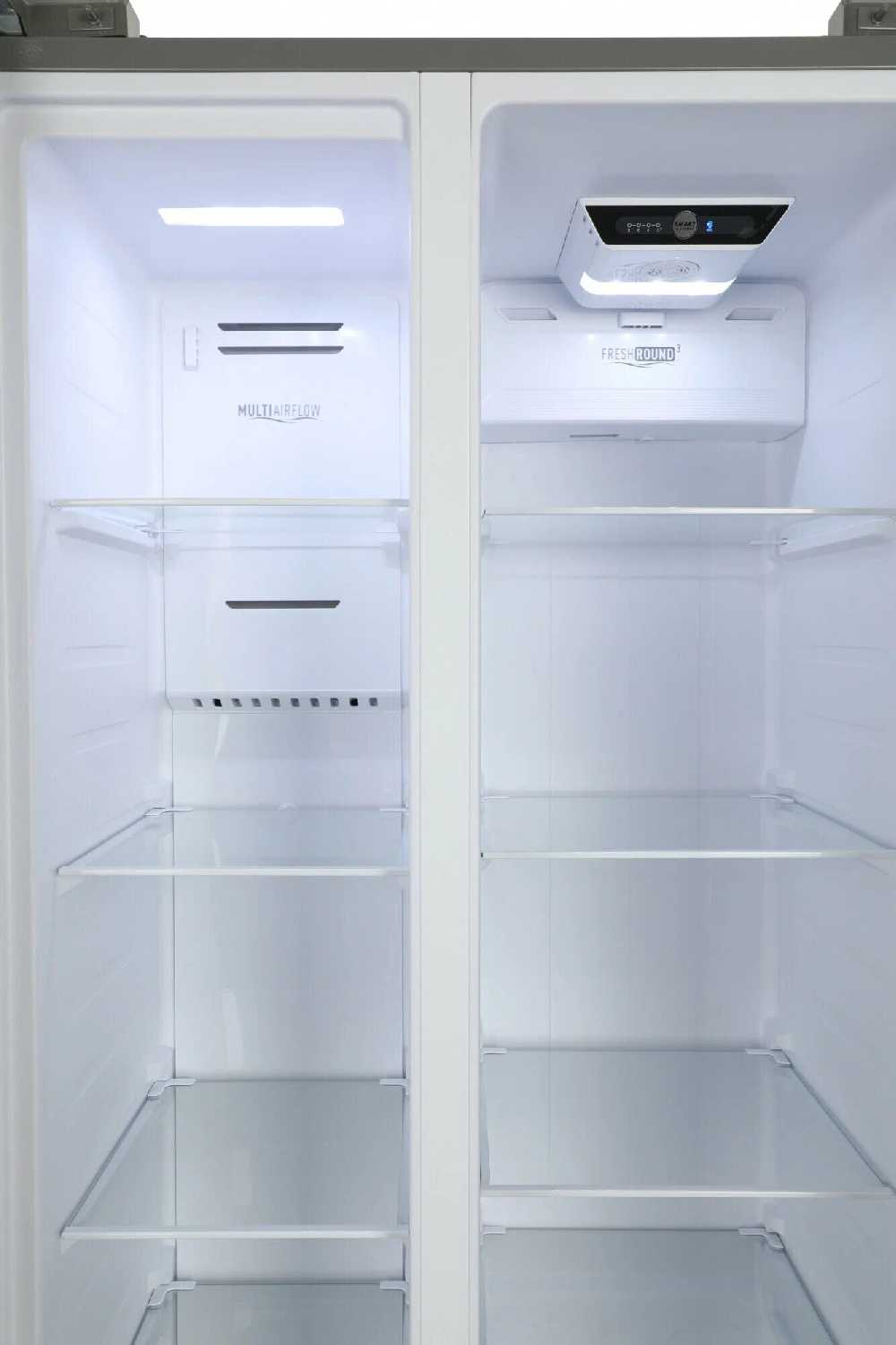Эргономика холодильника получила противоречивые оценки. С одной стороны, пользователи хвалят лёгкое открывание дверей без эффекта "присасывания", надёжную фиксацию стеклянных полок в пазах и яркую внутреннюю подсветку. Регулируемые ножки позволяют выровнять агрегат даже на неровном полу. Диспенсер для воды (при его наличии) оценивается как полезный бонус для постоянного доступа к охлаждённой воде. С другой стороны, отмечаются тяжелые двери, требующие аккуратности при открывании во избежание повреждения стенки, и недостаточная высота верхних полок для высоких пользователей (рост 1.8 м). Отсутствие зоны свежести (специального отсека для овощей/сыров) и удалённого управления через смартфон воспринимается как упущение. Внутренний дисплей температуры, требующий открытия двери для настройки, менее удобен, чем выносные панели. Маркие материалы корпуса (особенно нержавеющая сталь или глянцевые покрытия) нуждаются в частом уходе.