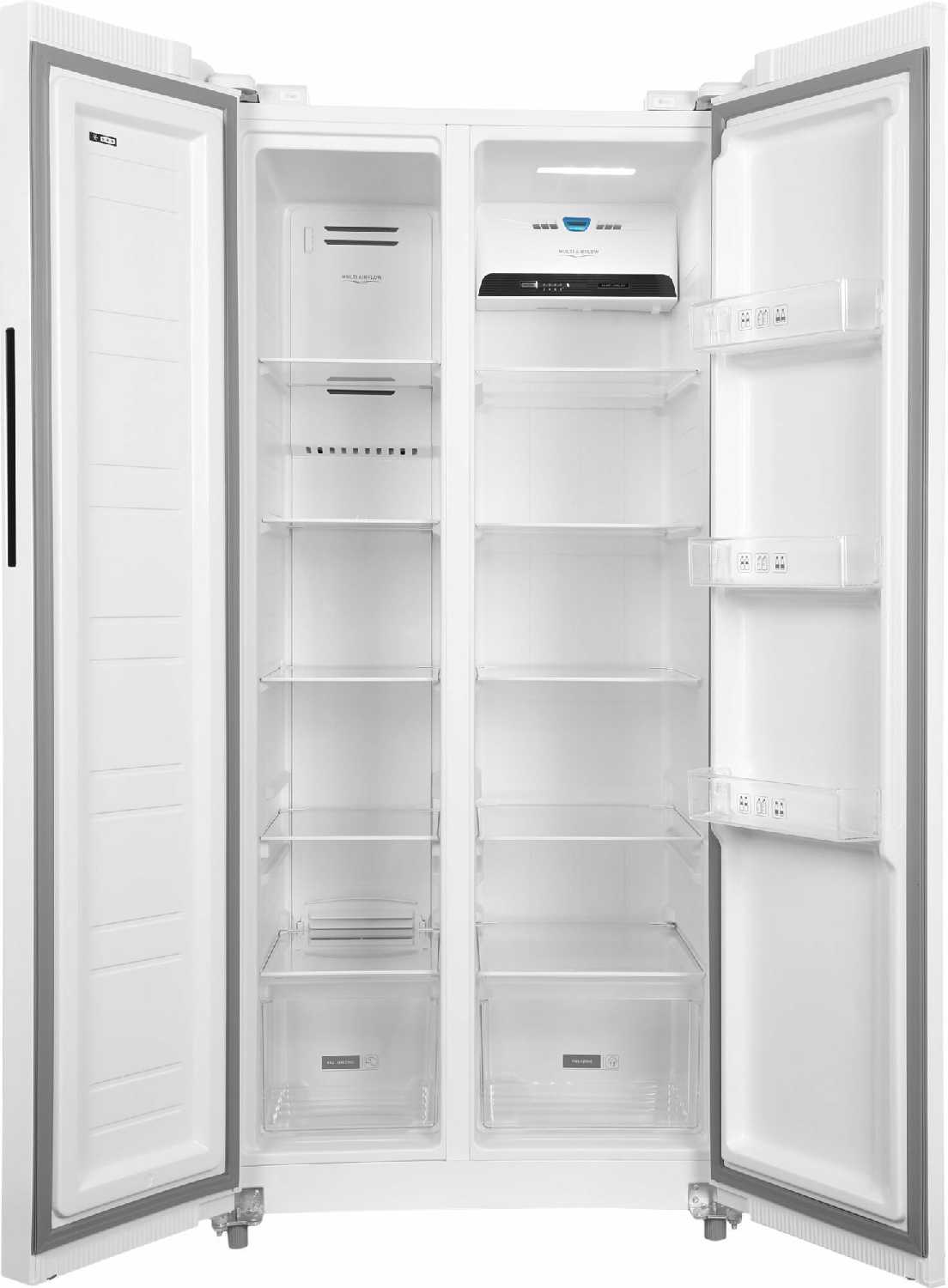 - + Этот холодильник радует белоснежным оттенком корпуса, который выглядит свежо и аккуратно. Удобно, что морозилка расположена сбоку, это делает загрузку проще. Общий объем впечатляет - целых 504 литра, хватит для большой семьи. В дверцах три полки, на них легко разместить все нужное. Управление интуитивное и работает без сбоев, все функции на высоте.