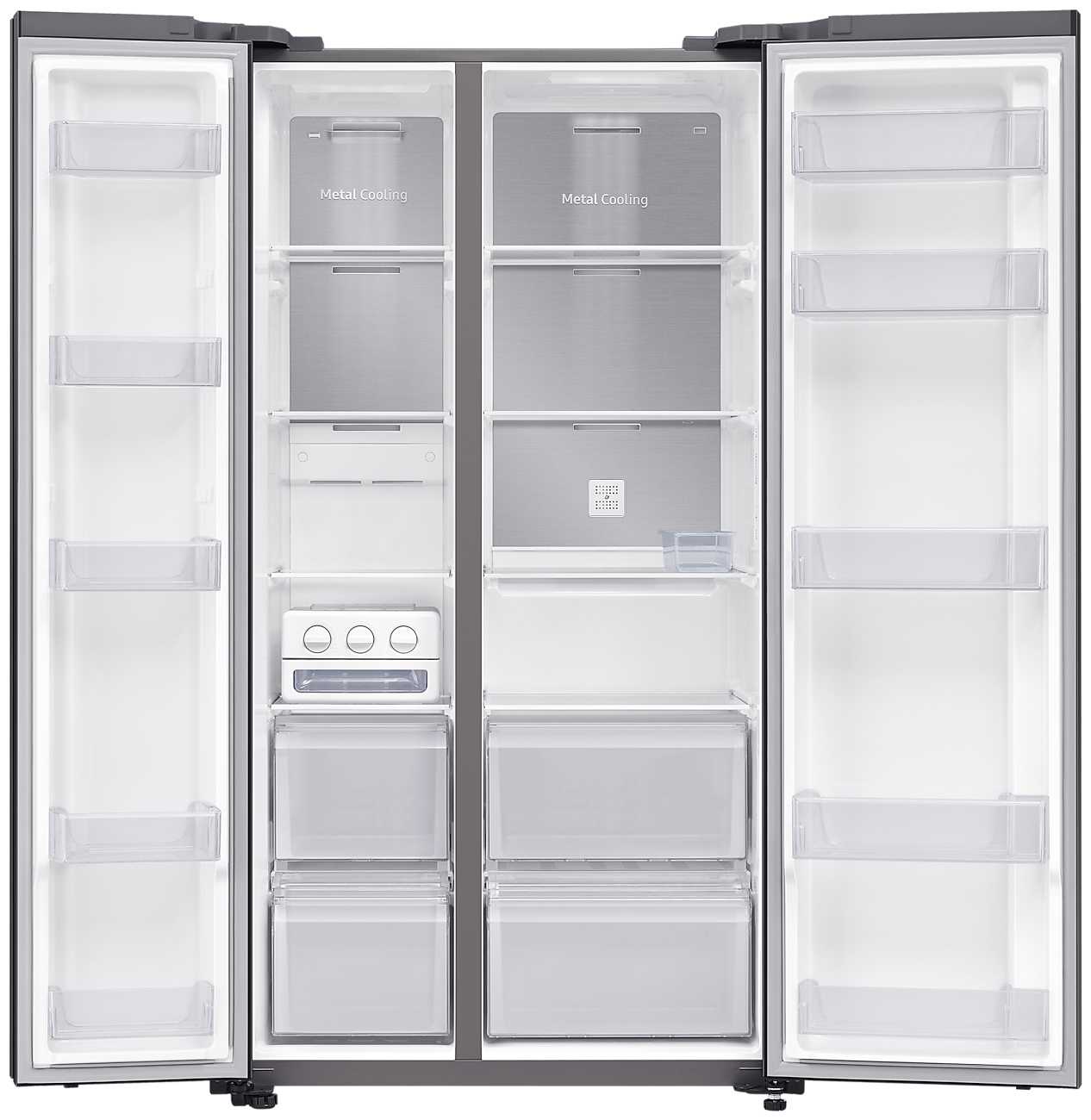 - + Большой и вместительный холодильник Side by Side