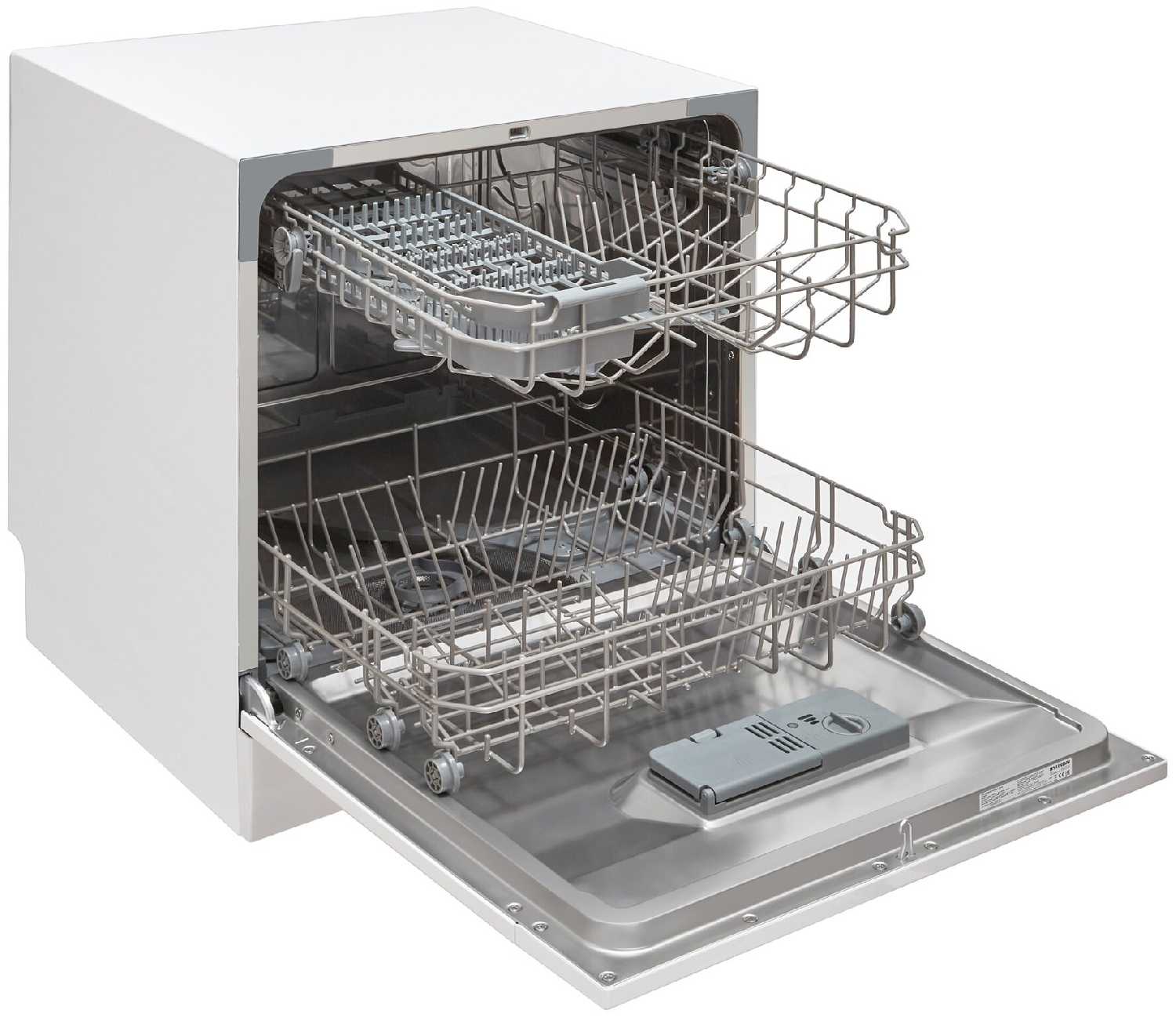 - + Света тянет мало, легко чистится, можно загрузить до 8 комплектов посуды