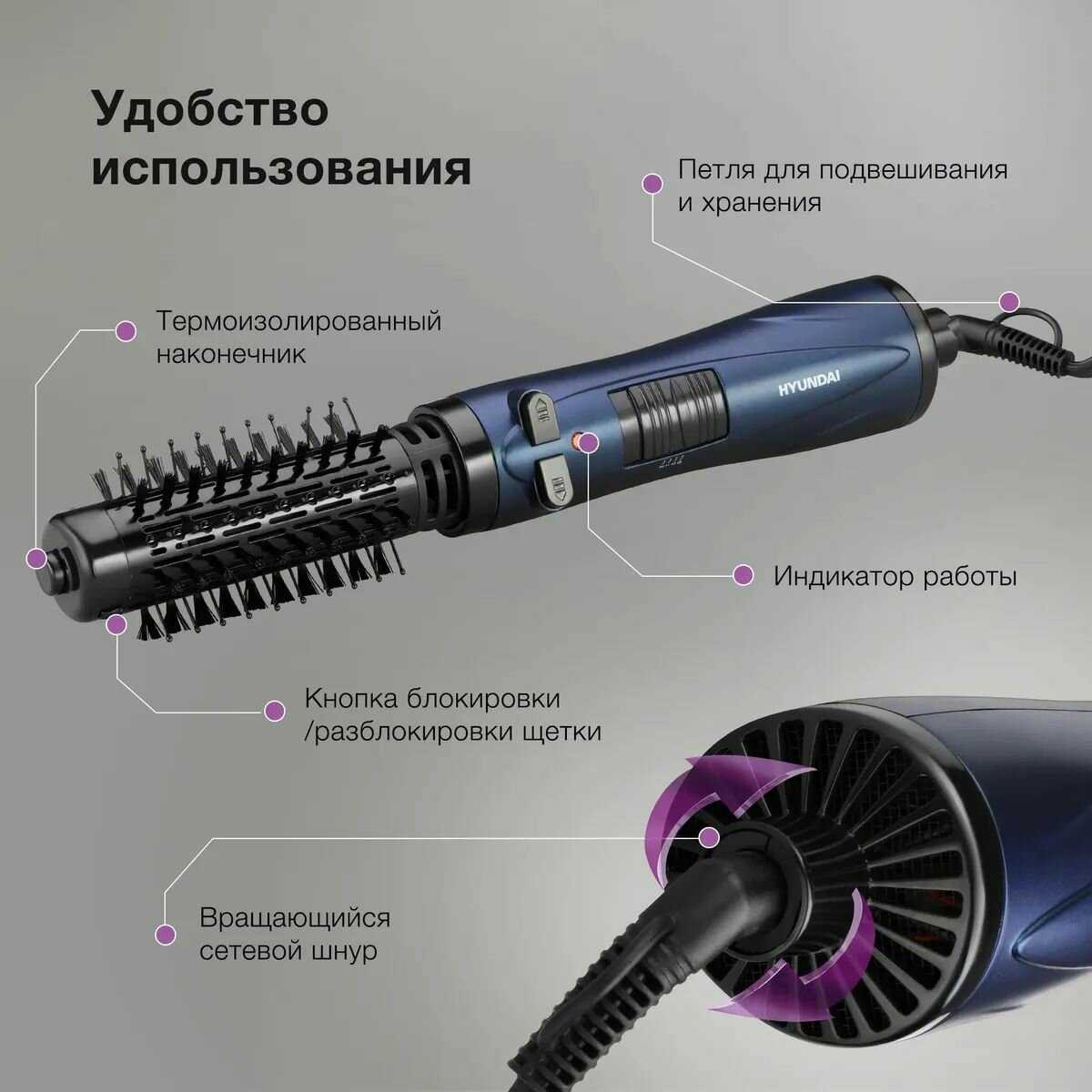 - Автоматическое вращение щётки избавляет от необходимости manually крутить пряди, как при использовании отдельной щётки и фена.