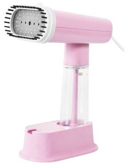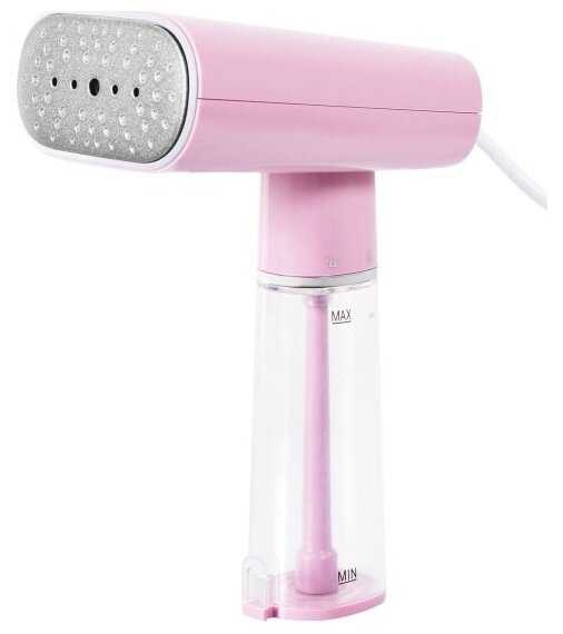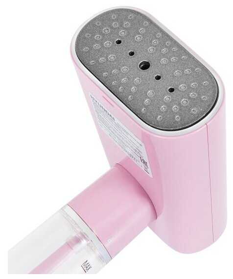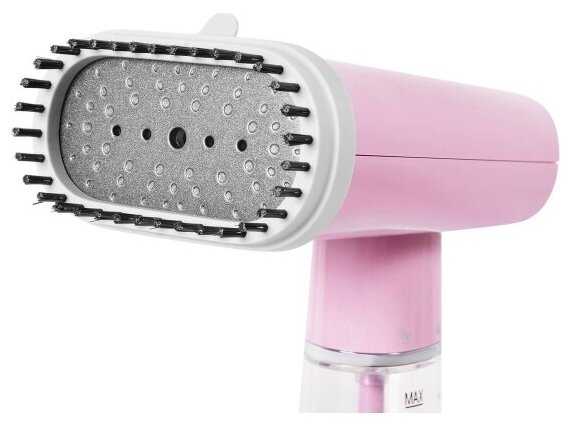 Дизайн отпаривателя прикольный, мягкий розовый. На вещах пятен не остается.