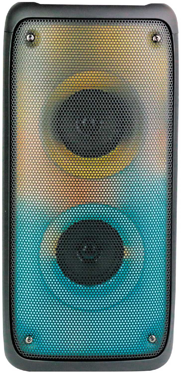 Колонка покупалась для музыки на даче. Очень удобная, можно таскать по огороду или включить на всю ивановскую, звук от громкости не страдает. Заряда батареи при громкости немного выше средней и без подсветки хватает надолго, не засекали сколько именно, но часа 5-6 точно есть. При включении и переключении режимов электронная девушка сообщает, какой режим включен, она же предупреждает о низком заряде аккумулятора.