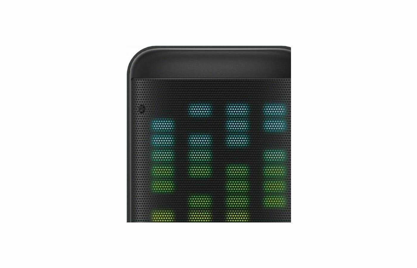 Светодиодный эквалайзер на передней панели имеет 5 режимов работы, включая реакцию на ритм музыки. Яркость достаточна для создания атмосферы в темноте, но днём эффект малозаметен. Подсветку можно полностью отключить для экономии заряда. Пользователи особо отмечают синхронизацию со звуком и отсутствие "мёртвых зон" в световой матрице. -