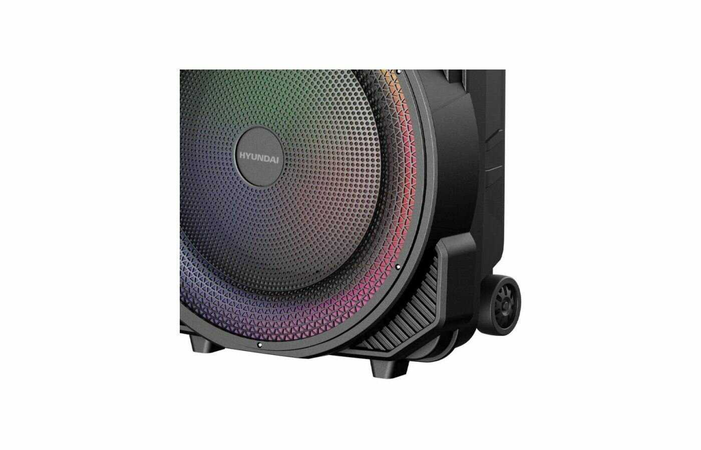 - + Эффектный дизайн с клёвой подсветкой, есть ручка с колёсиками для удобства в перемещении, звук хороший и с караоке так вообще в любой праздник будет что предложить в качестве развлечения.