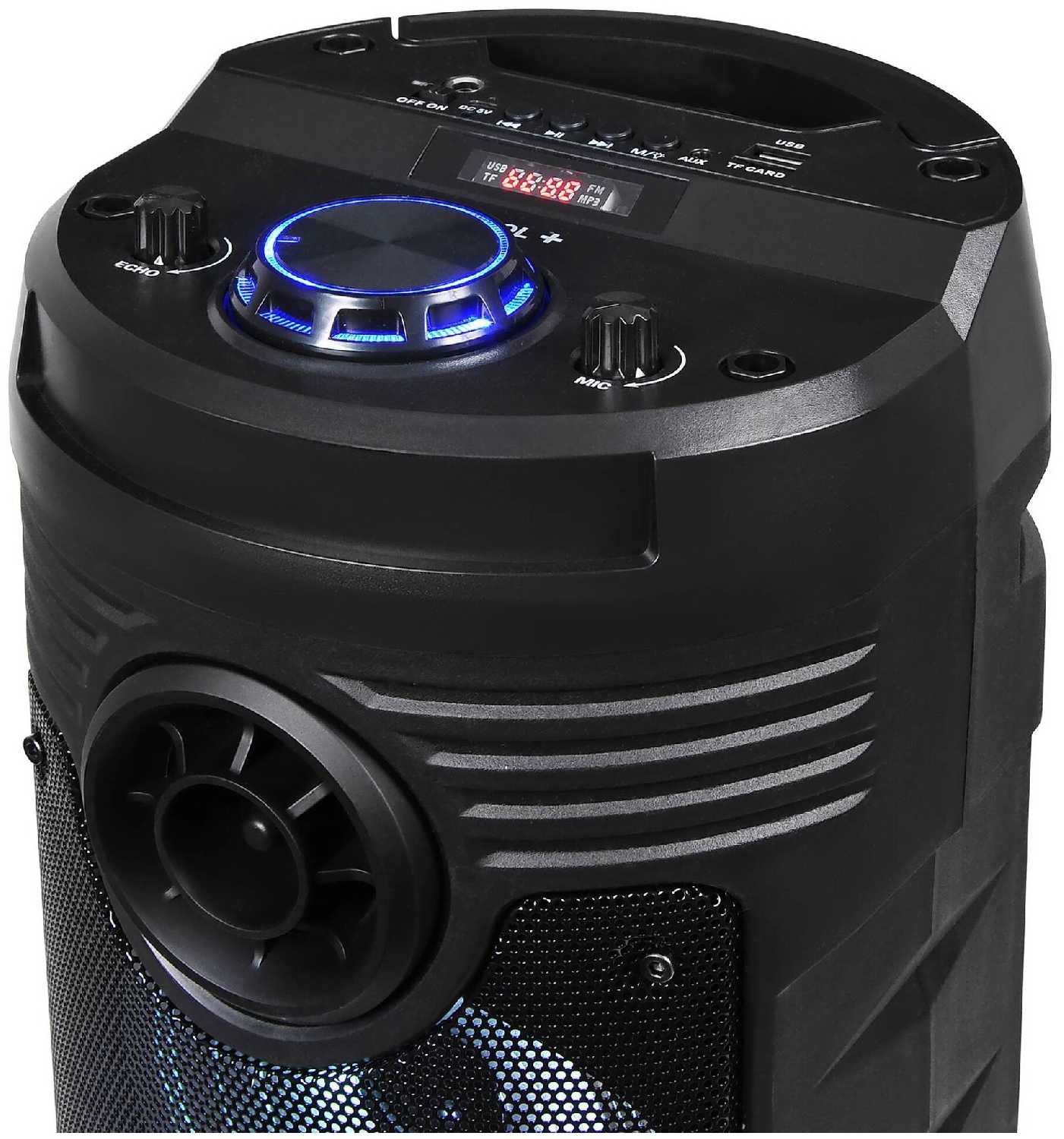 Колонка пойдёт по своей стоимости, если не слушал звучание круче. Громкость норм, есть пульт и микрофон в комплекте, но отсутствие глубоких бассов и вечно мигающая светомузыка перевесели на сторону плохую. По такой цене я видел товары и по круче, но в целом колонка нормальная Можно взять с собой на природу, перенести без труда из комнаты в комнату, но в портфеле такую не потягаешь, так как размеры в поряде у неё.