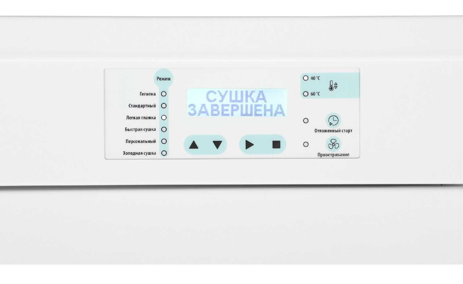 Режимы : | быстрая сушка, лёгкая глажка, проветривание, холодная сушка |