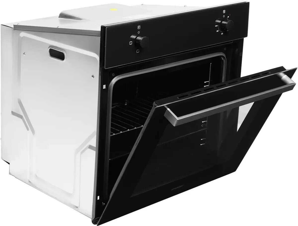 - + Управление удобное, ручное — на барашках. Духовой шкаф 60 л — вполне хватает, даже если готовить сразу на двух уровнях. Стекло в процессе не нагревается, можно готовить спокойно. Дверь легко открывается вниз, без лишних усилий.