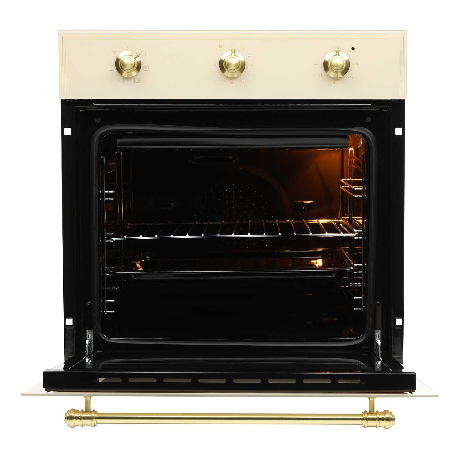 - Вентилятор обеспечивает циркуляцию воздуха по всему объёму (68 л), исключая "холодные зоны" — выпечка пропекается равномерно даже на разных уровнях без переворачивания.