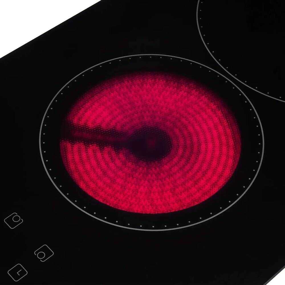 - Расстояние между зонами (12 см) позволяет одновременно использовать две сковороды без тесноты.