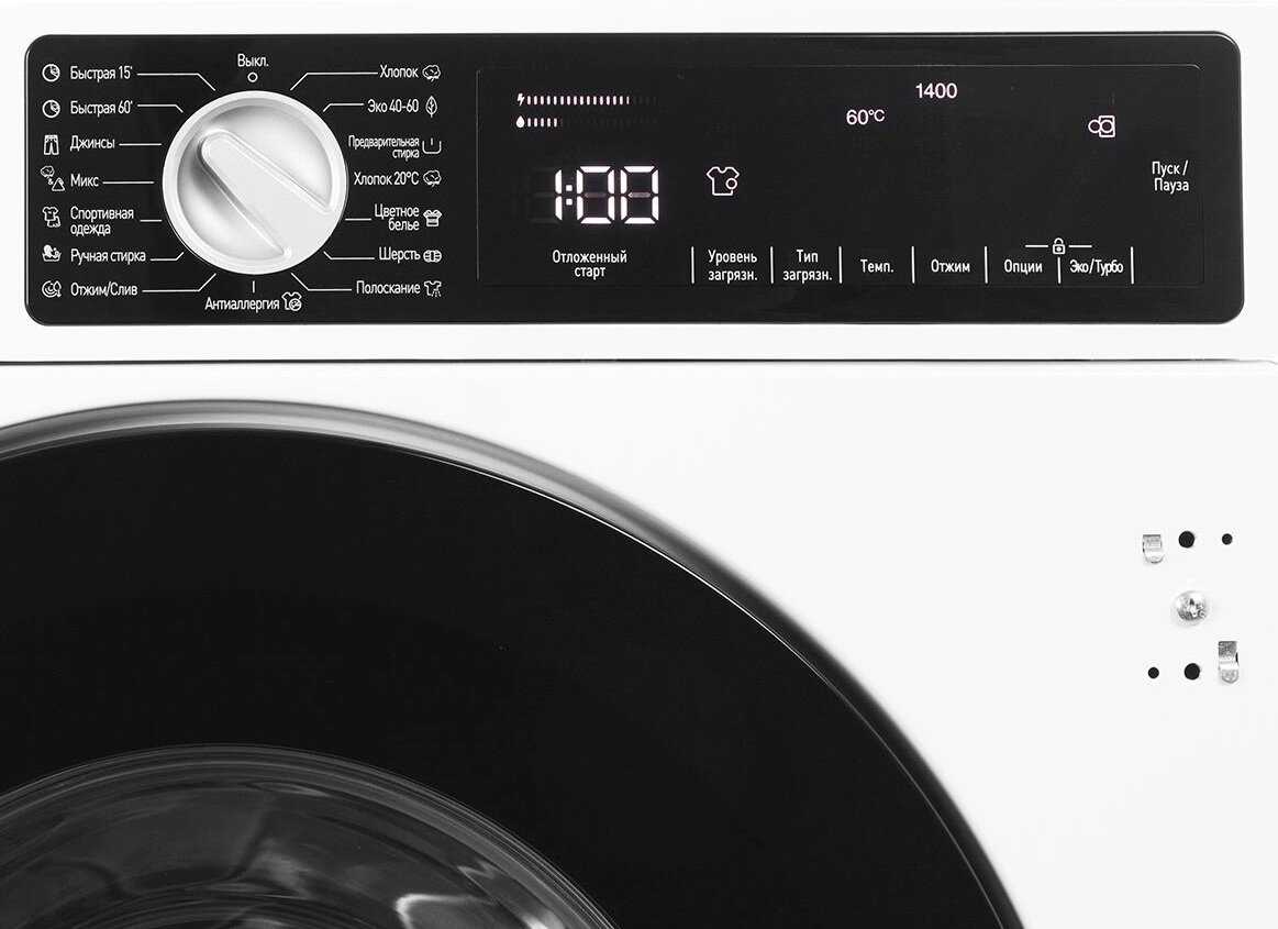 - + -загрузка 8 кг, -отжим 1400 об/мин, -15 программ, -защита от протечек