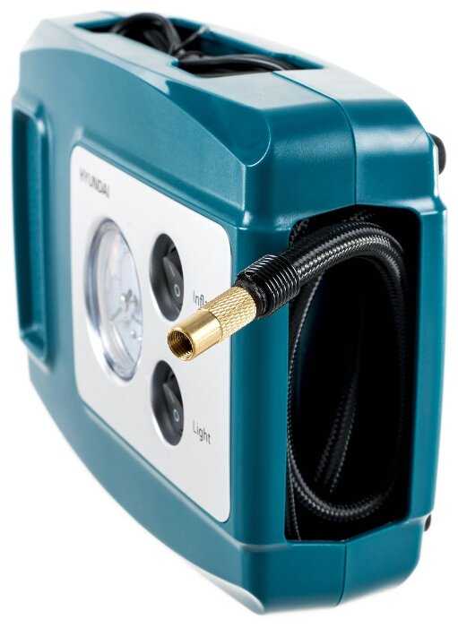 Приобрёл HYUNDAI HY 1535, так как требовался компактный компрессор. Дивайс понравился. Шнур для подключения к прикуривателю и шланг подключения к ниппелю колеса прячется в специально отведённые карманы. Встроенный светодиодный фонарик может пригодится для накачки колёс в ночное время. С обратной стороны сделан бардачок , где живут три разнообразные насадки. Манометр работает. Присутствует руководство и гарантийный талон на русском языке. Закручивающееся крепление к ниппелю тоже устроило, так как при спущенном колесе не удобно вставлять флажковый зажим. За такие деньги очень даже приличный компрессор.