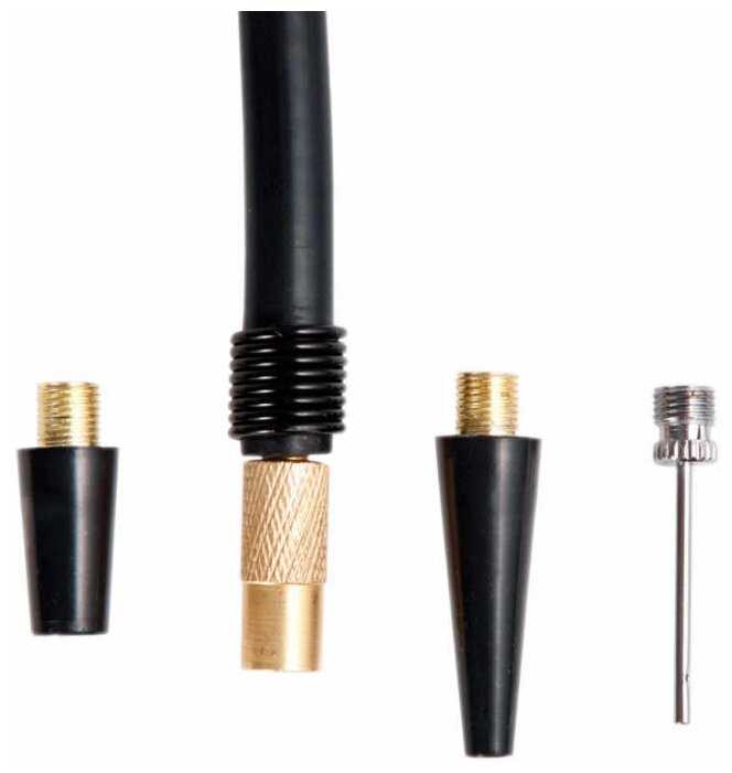 - В набор входят адаптеры для Schrader (авто), Presta (велосипеды) и игольчатый для спортинвентаря.