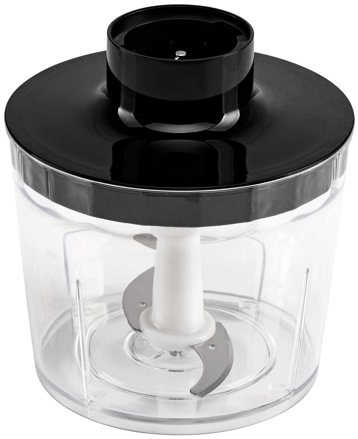 - Включает венчик, измельчитель, мерный стакан 700 мл и чашу для измельчения.