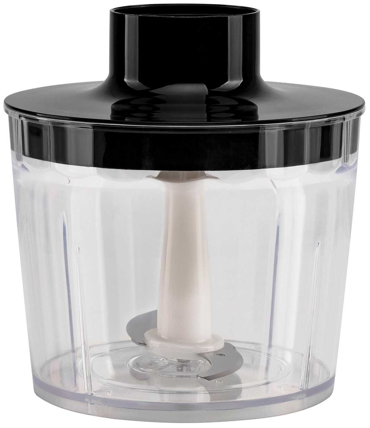 - Включает венчик, измельчитель, мерный стакан 700 мл и чашу для измельчения.