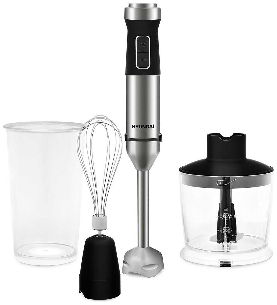 - Включает погружную насадку, венчик для взбивания, измельчитель с чашей и мерный стакан, что делает прибор универсальным для смешивания, взбивания и нарезки.
