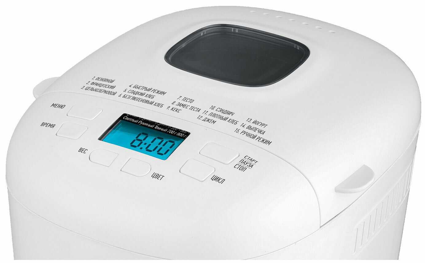 - + Выбор веса из 19 режимов, форма для буханки, прочный корпус, 15-часовой таймер и антипригарное покрытие.