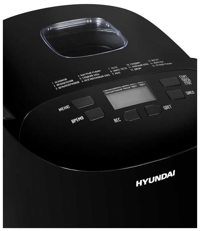 - Режимы «Французский хлеб», «Цельнозерновой», «Джем», «Кекс» покрывают основные потребности.