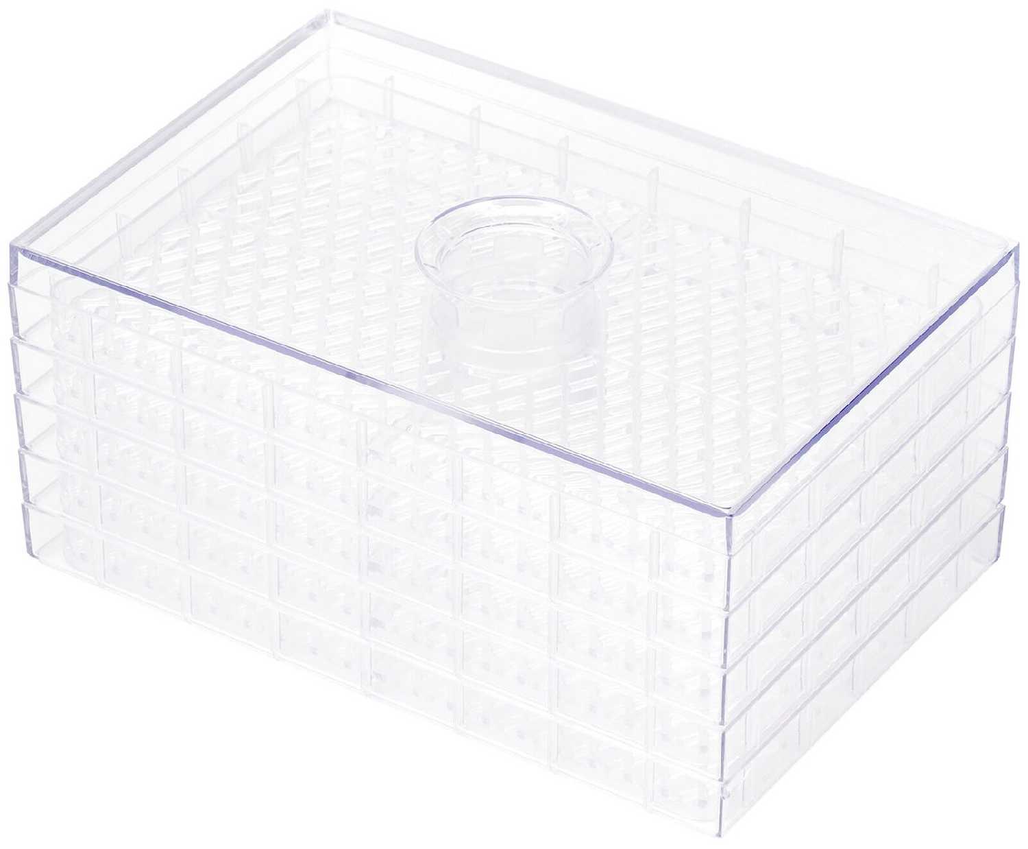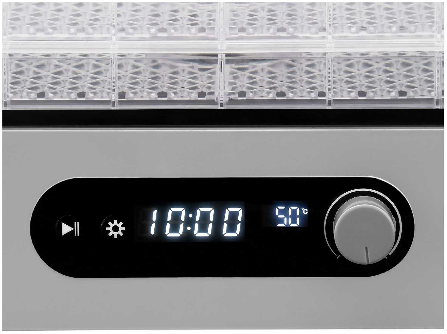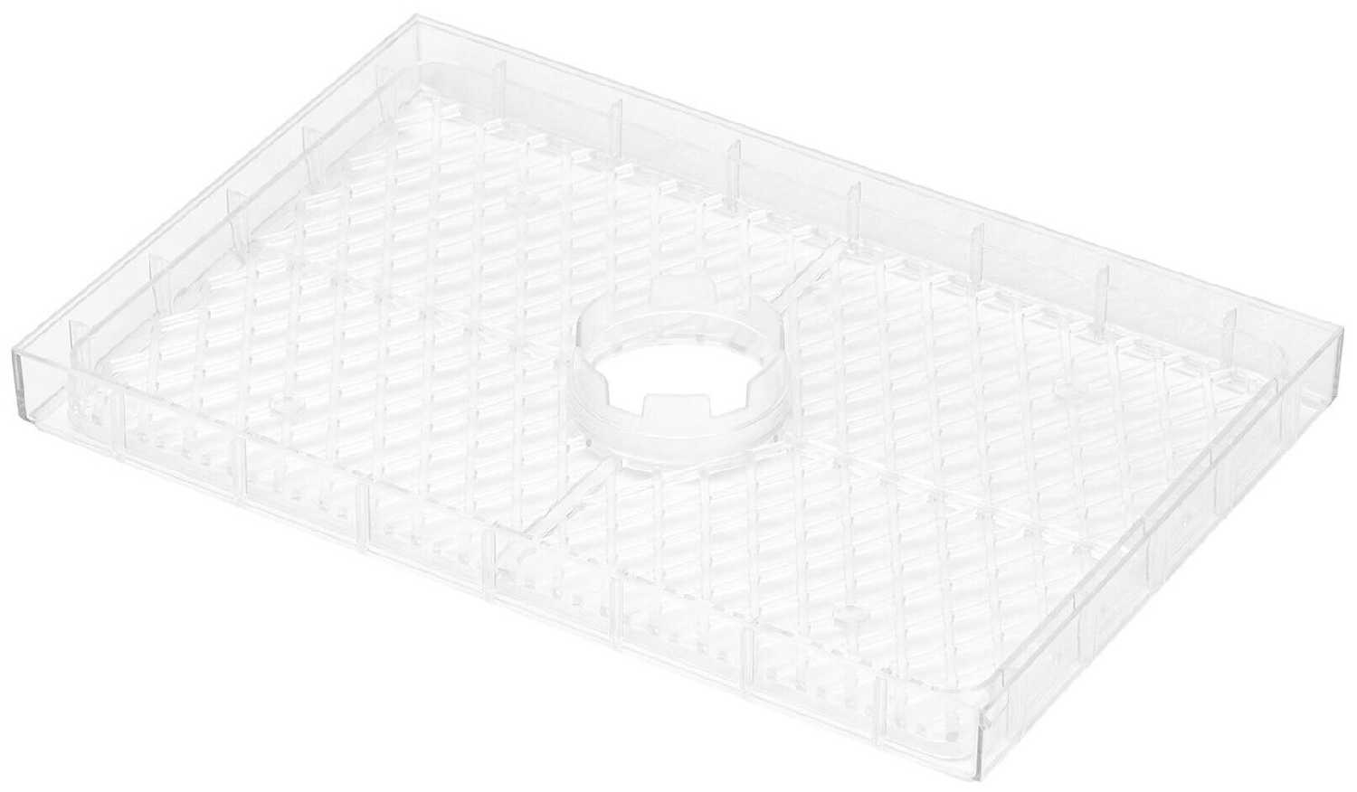 - 5 съёмных поддонов (29×19 см) с высотой 3 см обеспечивают достаточную вместимость для крупных ломтиков фруктов, мяса или трав.