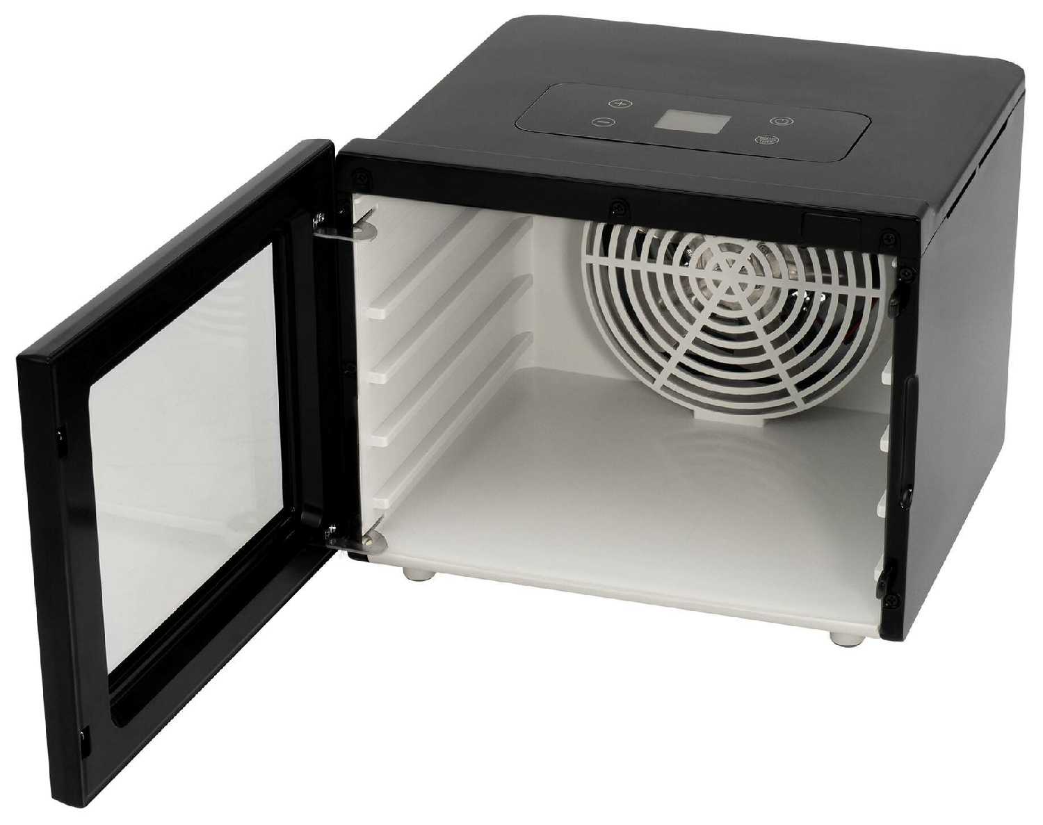 - + Не большая только на 4 уровня но мне больше и не надо, потом не буду знать где хранить, тихо работает, поддоны загружаются без особых трудностей, температур регулируется.