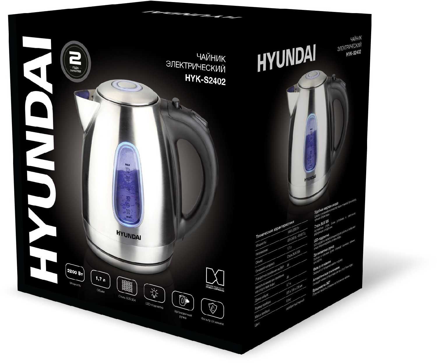 Отзывы о Чайник электрический Hyundai HYK-S2402 [1.7л 2200Вт]