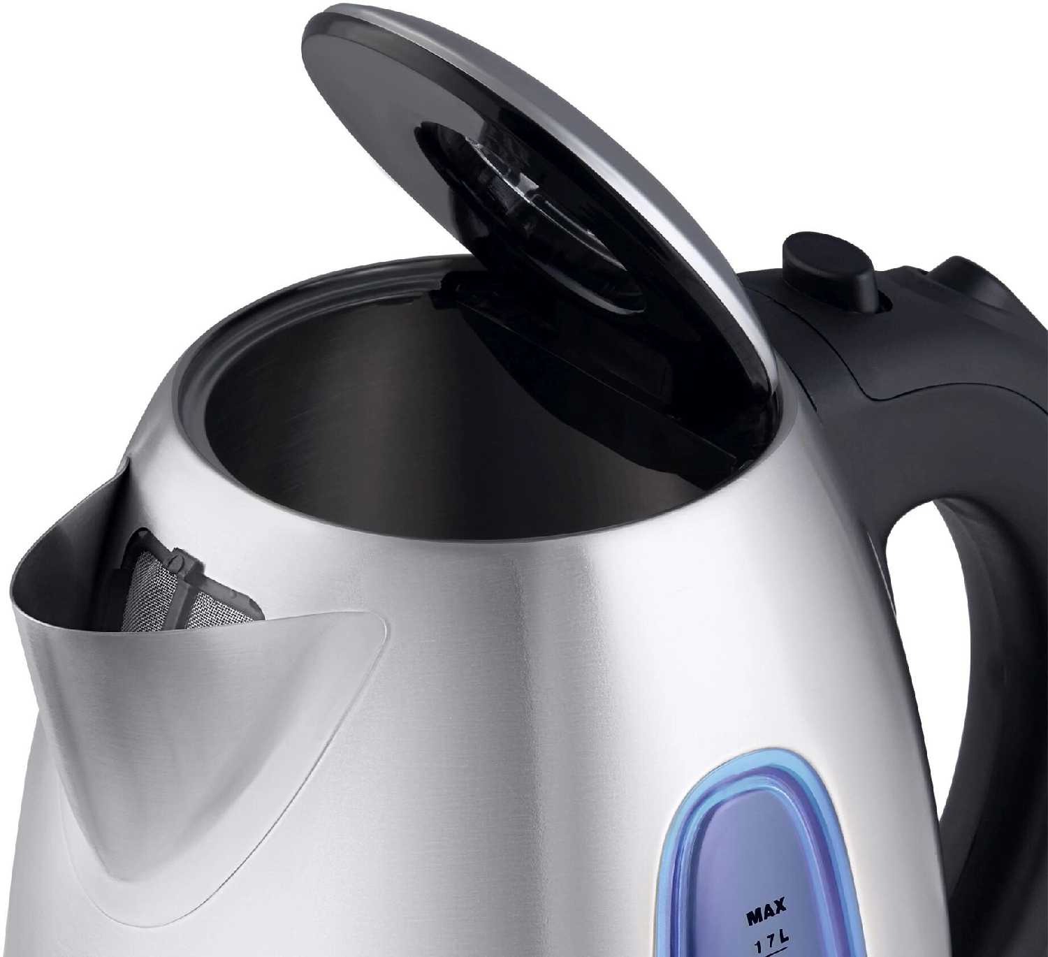 - + Хороший чайник, при закипании не очень громкий, симпатичный, при нагреве окошко светится голубым светом. удобная ручка, хорошо моется, все устраивает.