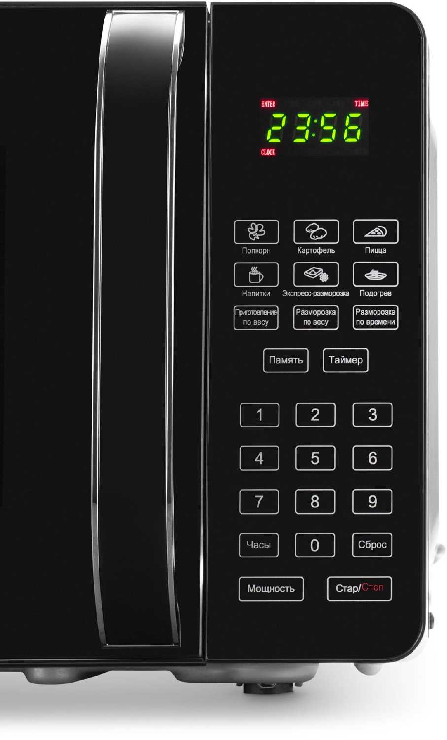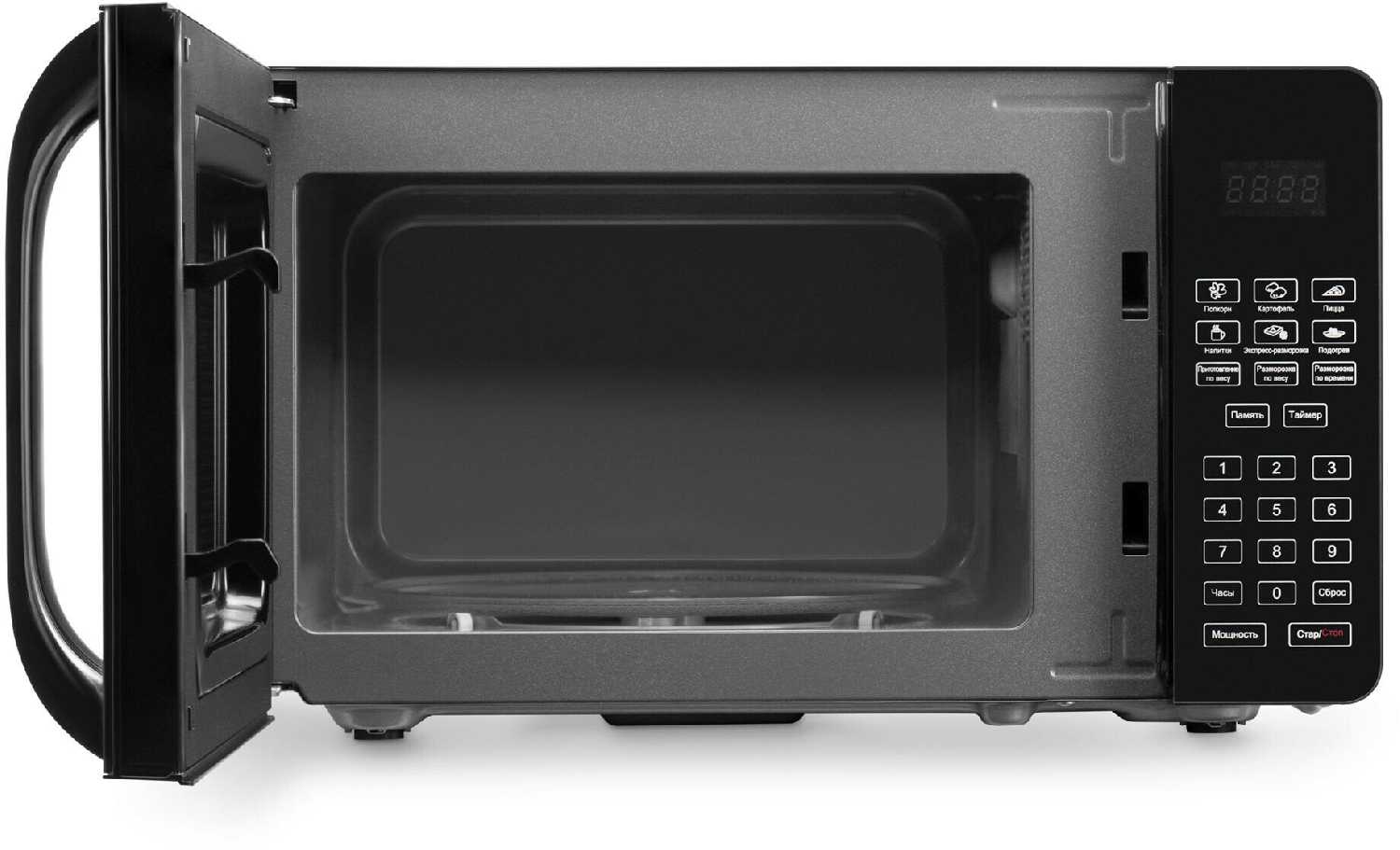 Объем камеры составляет 20-29 литров, что позволяет размещать объемные блюда и посуду стандартных размеров без ограничений. Пользователи подтверждают, что этого пространства достаточно для повседневных задач — от разогрева супов до приготовления порционных блюд. Вместительность камеры оптимальна для семейного использования, при этом микроволновка сохраняет компактные внешние габариты. -