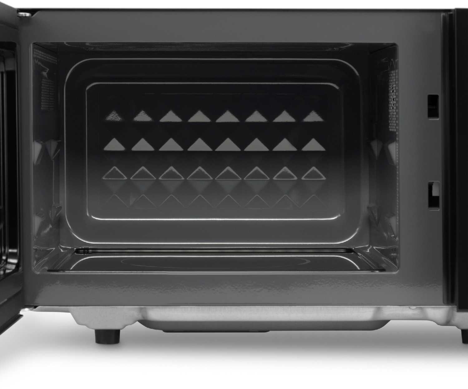 - Низкий уровень звука во время нагрева позволяет использовать микроволновку ночью или в небольших помещениях без помех.