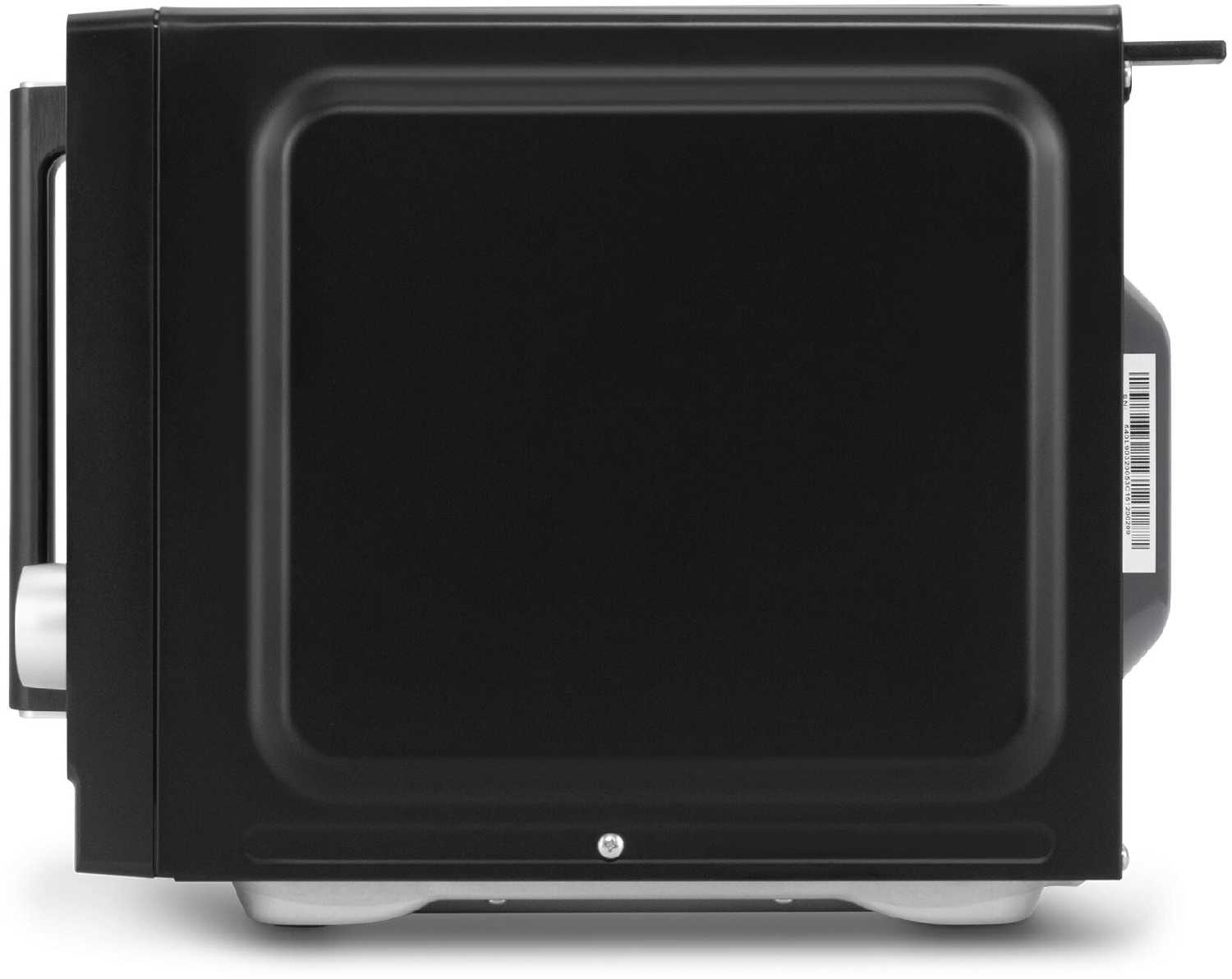 Устройство имеет лаконичный и сдержанный дизайн, который хорошо вписывается в различные стили интерьера. Черный корпус выглядит современно и стильно, хотя требует более частого ухода из-за заметности отпечатков пальцев и водных разводов. Компактные размеры позволяют разместить микроволновку даже на ограниченном пространстве. Отсутствие лишних деталей в дизайне делает модель универсальной для любой кухни. -