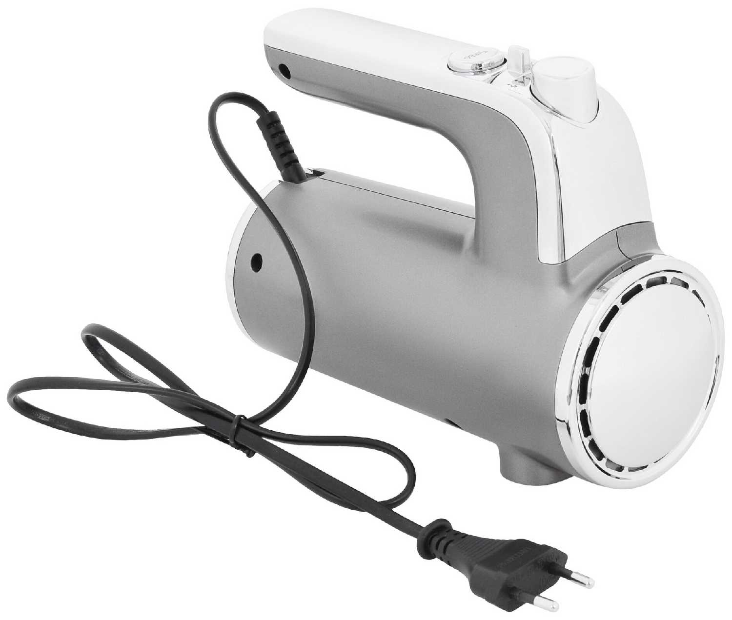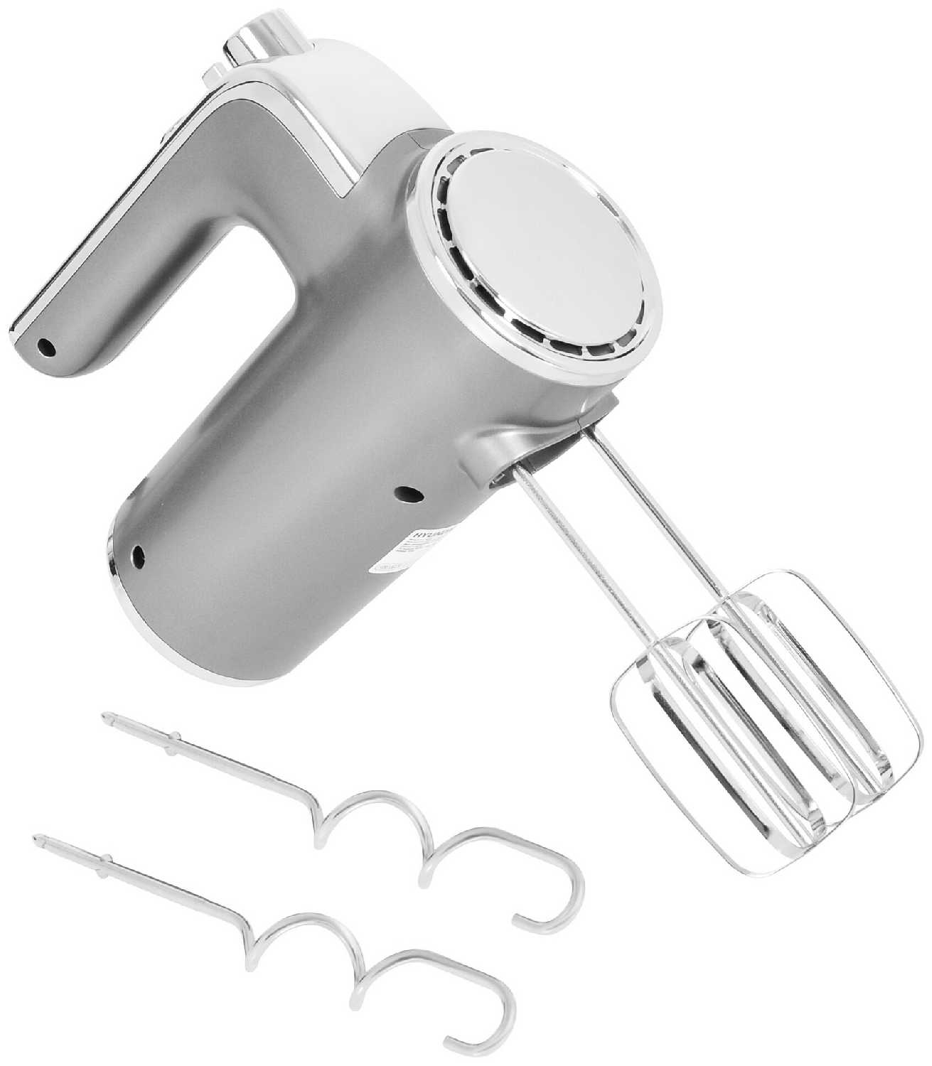- + В комплекте идут венчики для взбивания и крюки для теста. Насадки легко снимаются и моются, не требуют особого ухода. Шнур длиной 1.5 м даёт свободу движения, не ограничивает в процессе работы.