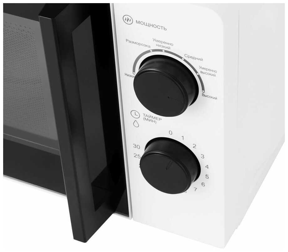 - Мощность 700 Вт обеспечивает быстрый разогрев: 200 мл воды за 1 минуту, суп за 2–4 минуты.