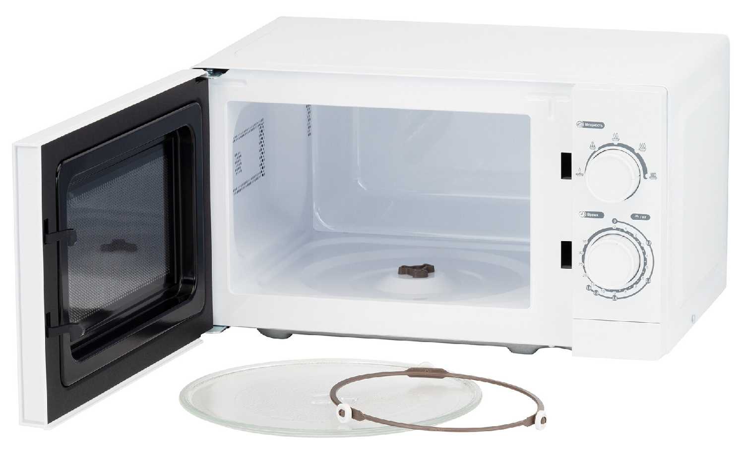 - + Микроволновка мощностью 700 Вт и объемом 20 литров.