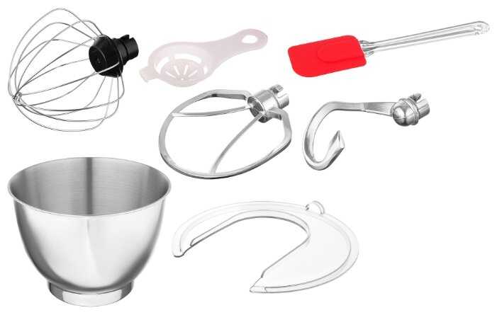 - Комплектация из трех насадок (венчик, крюк, лопатка):