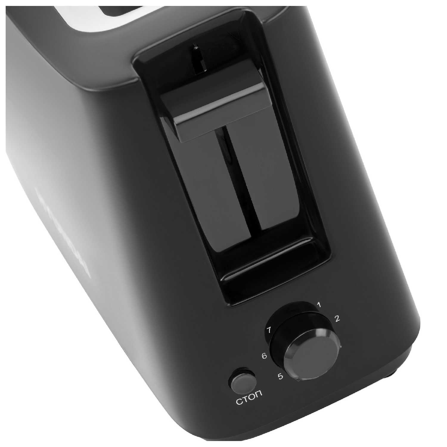 Брали небольшой тостер на один кусочек, потому что пользуемся им только по утрам и то не всегда. Конструкция простая и по управлению все понятно. Есть отдельная кнопка стоп, можно достать хлебушек раньше времени. На регуляторе целых 7 режимов прожарки, каждый может подобрать свой любимый. В тостере предусмотрено центрирование ломтика, хлеб не застревает.