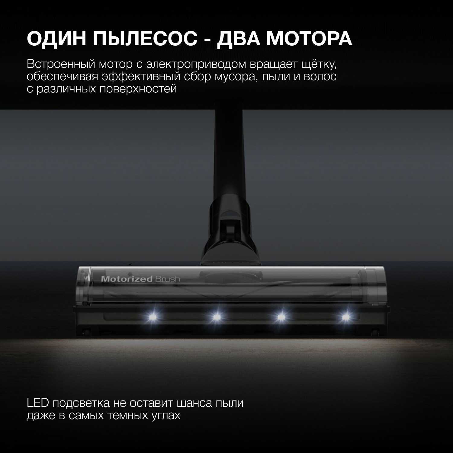 Пылесос обладает продуманной эргономикой — он легкий и сбалансированный, что позволяет комфортно убирать одной рукой без быстрой усталости. Благодаря поворотной щетке и компактным габаритам он легко проходит под мебелью и обрабатывает труднодоступные зоны. Многие пользователи особенно отмечают удобство сенсорного управления на рукоятке и возможность быстрого превращения в ручной пылесос для точечной уборки. -