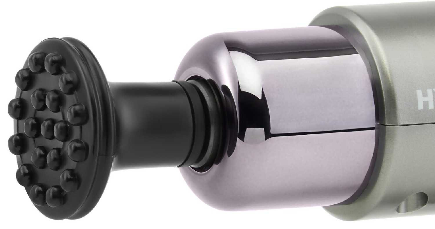 - Насадки надежно крепятся, легко меняются и подходят для антицеллюлитного, расслабляющего или точечного воздействия.