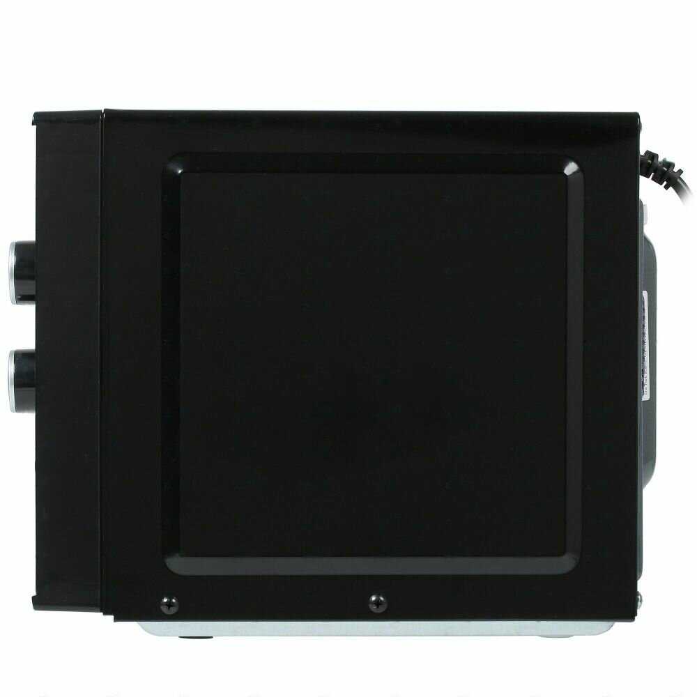 Камера имеет гладкое покрытие, устойчивое к загрязнениям. Пользователи отмечают, что жировые брызги и следы пищи легко удаляются влажной тканью без абразивов. Дополнительный плюс — черный цвет скрывает мелкие загрязнения, а стеклянное блюдо моется в посудомоечной машине. -