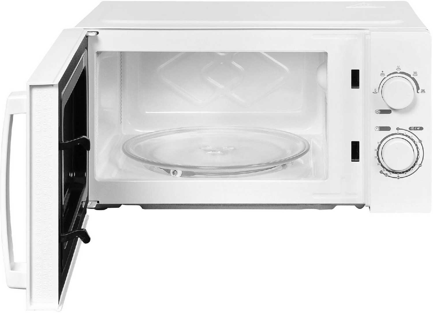 Вместимость 20 литров с поворотным столиком диаметром 24,5 см позволяет разместить большую тарелку, небольшую кастрюльку или контейнер с крышкой. Этого хватает для разогрева порций на 1–2 человек, но для семей из 3–4 людей или крупной посуды (например, объёмных форм для запекания) некоторые пользователи считают пространство недостаточным. При этом компактные габариты экономят место на маленьких кухнях. -