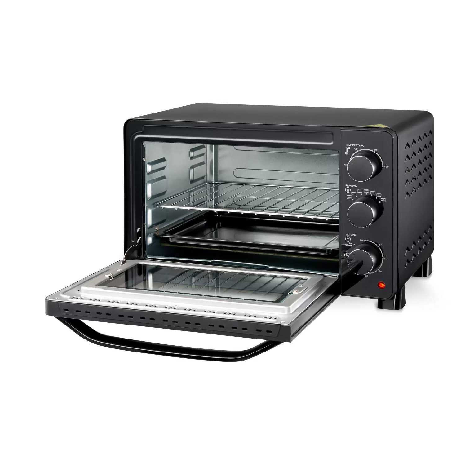 Идеальный выбор для малогабаритных кухонь, съёмного жилья или дачи благодаря компактности (габариты 30×30×45 см) и мобильности. Объём 23 л оптимален для 1-2 человек: позволяет запечь курицу весом до 1.5 кг или противень пирогов, но для семьи из 3+ человек маловат. Максимально раскрывает потенциал при выпечке, запекании овощей/мяса и разогреве блюд, полностью заменяя громоздкую духовку. Незаменим там, где нет газовой инфраструктуры. Экономичное энергопотребление делает его выгодным для частого использования.