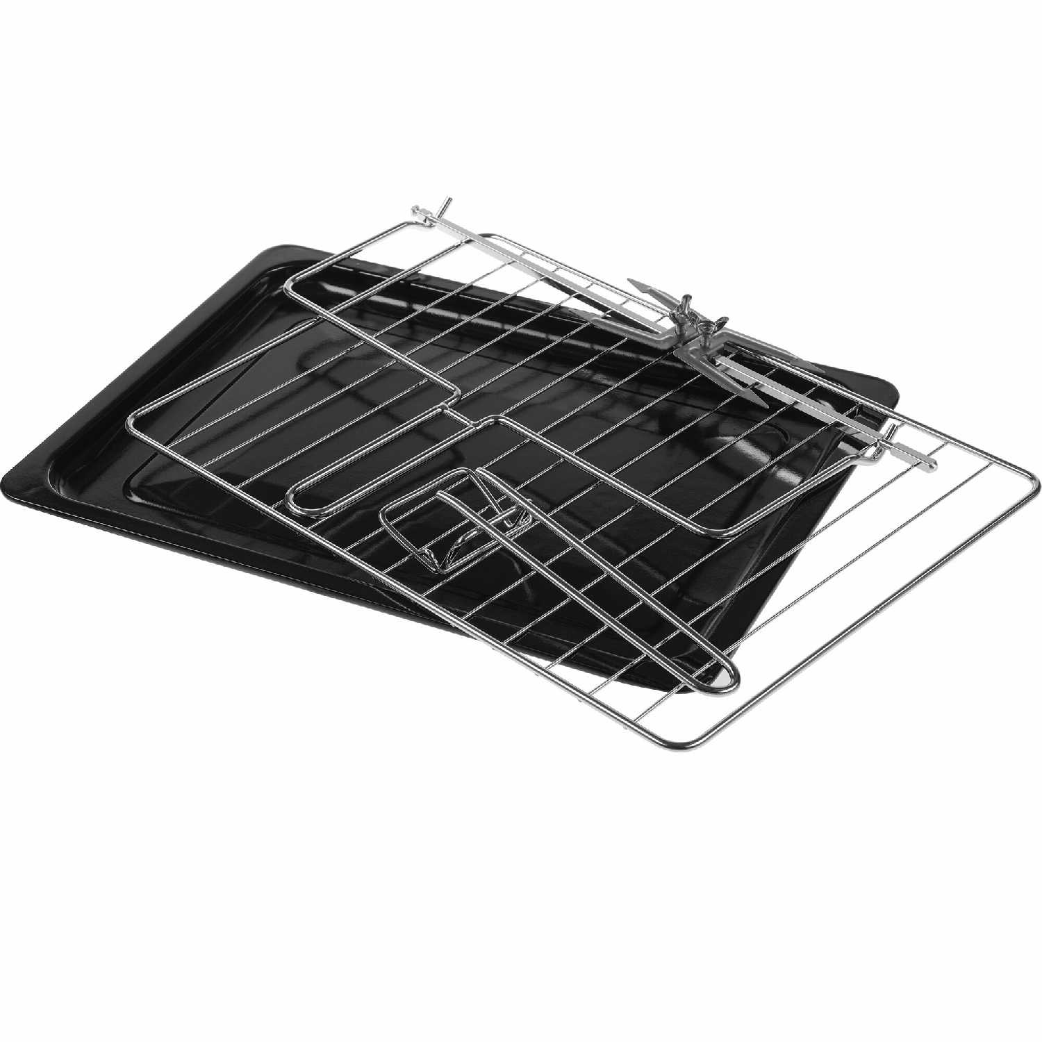 В комплекте : | вертел, держатель для противня/решётки, поддон для сбора крошек, противень, решётка, ухват |