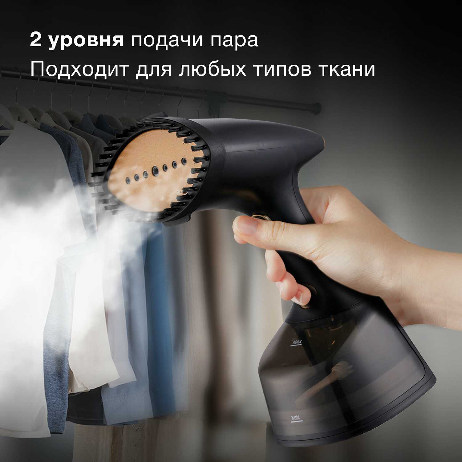 Устройство имеет мощность 1800 Вт. Отзывы подтверждают, что это обеспечивает хорошую производительность для ручного отпаривателя: быстрый нагрев, достаточный пар для большинства задач. Однако для очень плотных тканей или больших объемов этой мощности может быть недостаточно. -