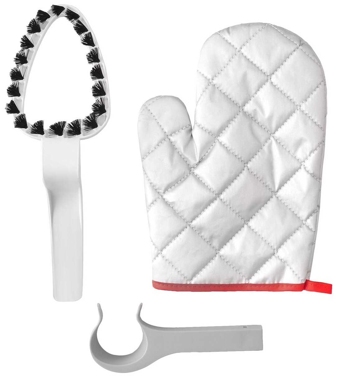 в комплекте есть аксессуары (защитная рукавица, насадка-щётка)