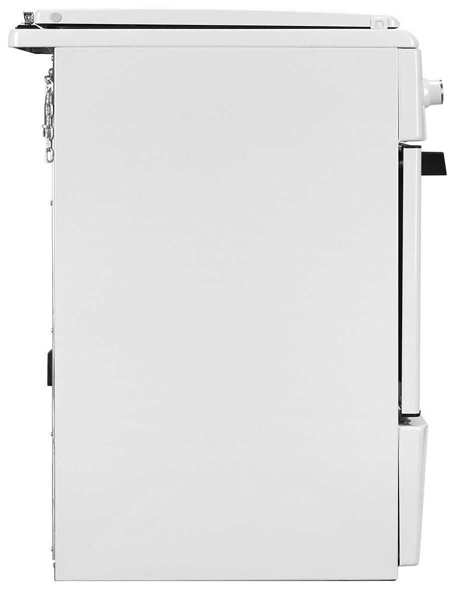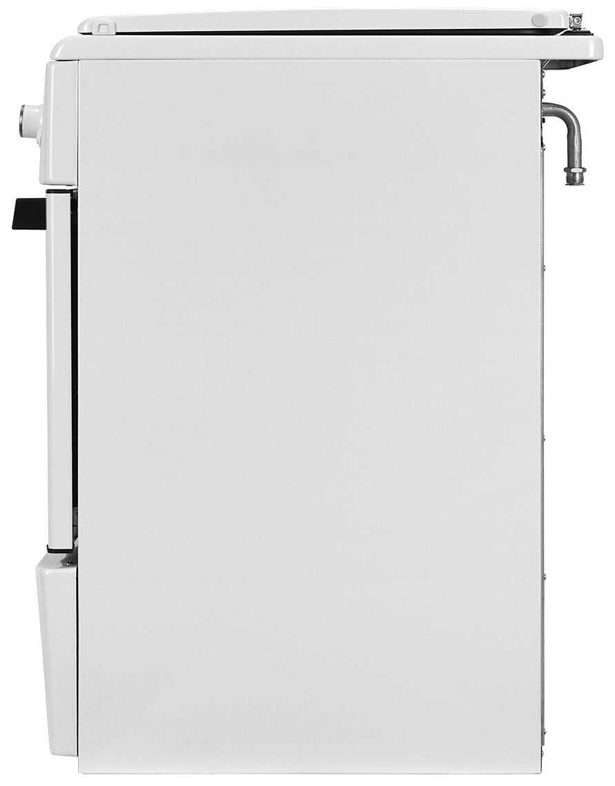 Гладкая эмаль варочной панели и духовки отталкивает жир: большинство загрязнений удаляется влажной губкой без химии. Белый цвет требует частой уборки — раз в 2–3 дня при активной готовке. -
