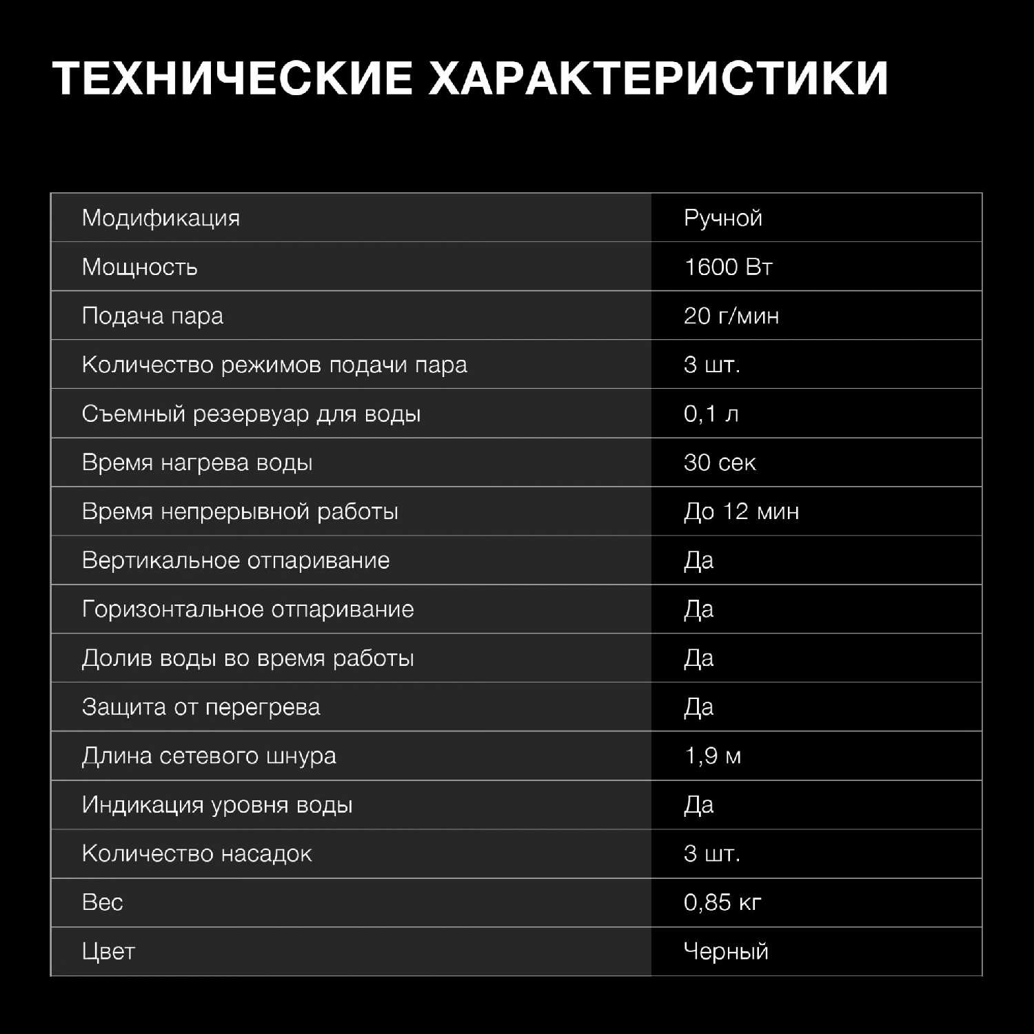 - + Подходит универсально для любого типа ткани, быстро нагревается, 12 минут непрерывной работы от одной заправки, защита от перегрева. Можно вертикально и горизонтально отпаривать вещи, что удобно.