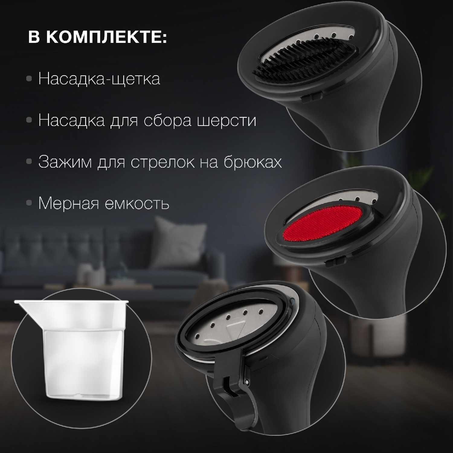 - + Недорогой, компактный девайс. В сумке занимает мало места, а значит брать его с собой в длительные путешествия сам бог велел. Несмотря на габариты, гладит хорошо . Комплектация отличная - зажим для стрелок на брюках, мерная емкость, насадка-щетка, насадка для сбора шерсти.