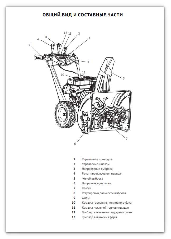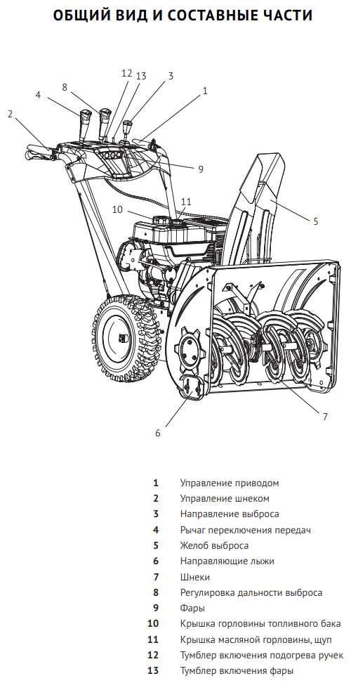 Поворот шнека и угла наклона выброса снега с панели управления.