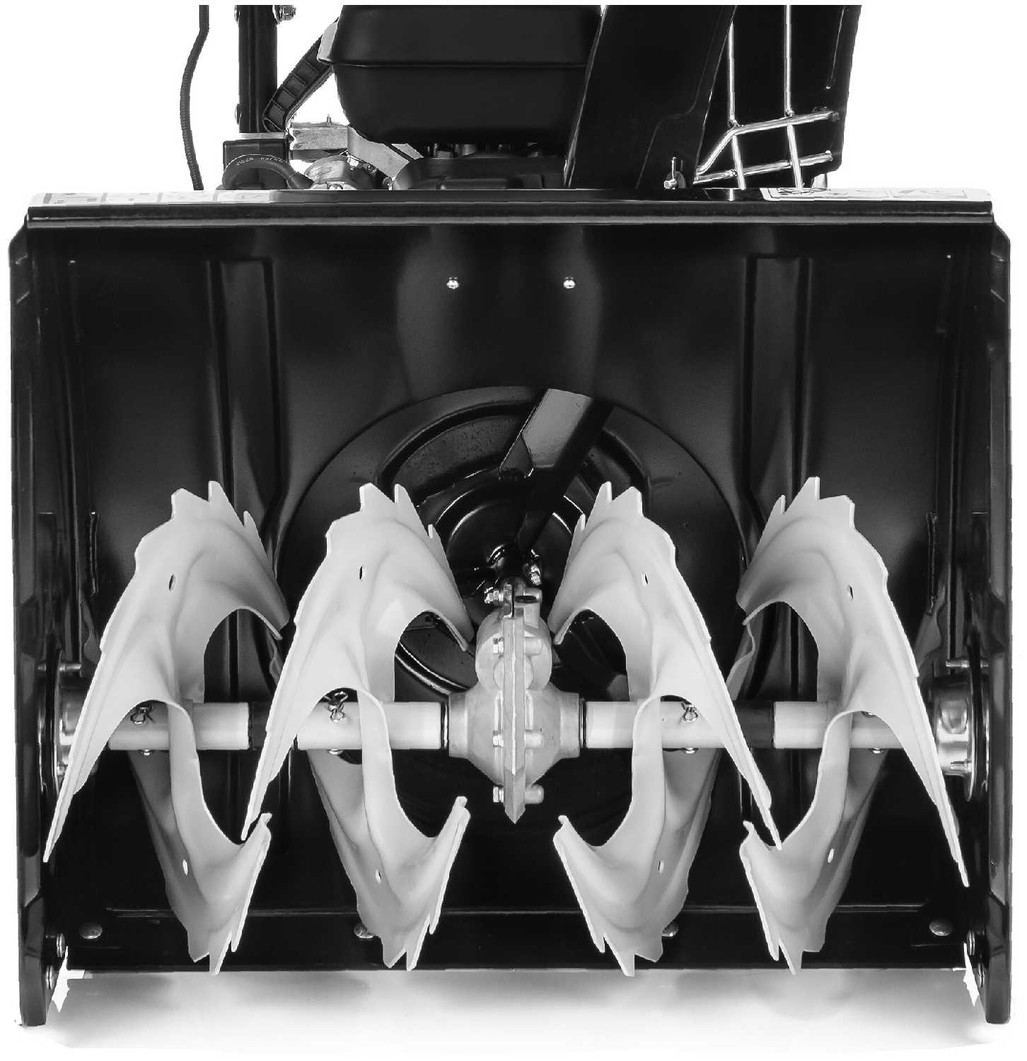 Мощный аппарат, с любым снегом справляется. Бывает, за неделю снег слежится. На выходных приезжаем, снегоуборщиком быстренько дорожки и площадку расчищаем. Только высокие сугробы не берёт: если снег выше ковша, излишки летят на движок. Шнеком снег измельчается прям до состояния крошки, потом легко вылетает по трубе. Плюс машина самоходная, знай только направляй, поэтому с ним даже супруга справляется. Единственное, электрический стартёр удобнее, а у ручного тяга тугая, только для мужских рук
