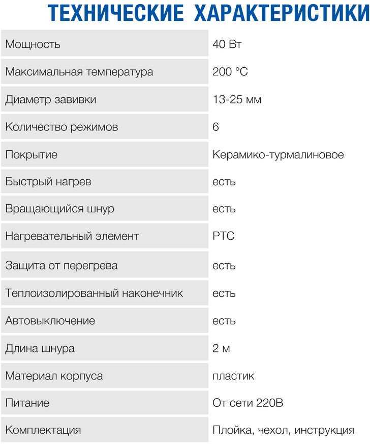 - диаметр щипцов/стайлера для завивки: 25 мм